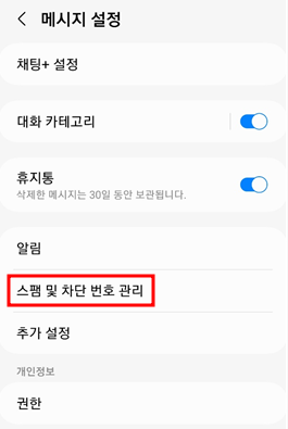 스팸 및 차단 번호 관리 메뉴를 클릭합니다.