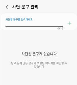 차단 문구 관리에서는 특정 문구를 입력해 차단 할 수 있습니다. 수신을 원치 않는 문구가 있다면 작성 후 + 버튼을 눌러 추가 하시면 됩니다.