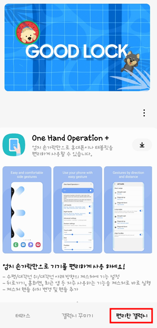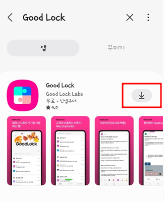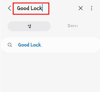 오른쪽 돋보기 클릭 후 Good Lock을 검색 후 설치 합니다.