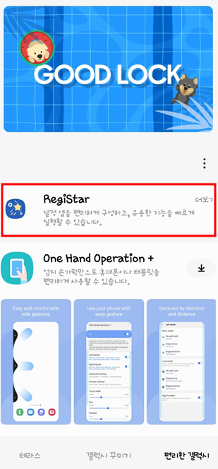 어플이 별도로 설치되지 않기 때문에 설치 후 편리한 갤럭시로 다시 들어가 상단에 표시되는 RegiStar을 클릭합니다.